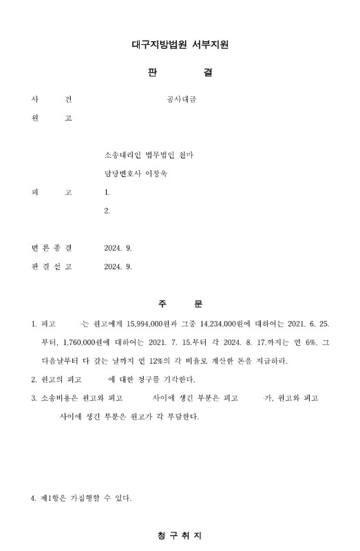 오늘은 천마법무법인에서 공사대금 사건을 어떻게 승소로 이끌었는지 알아보겠습니다.