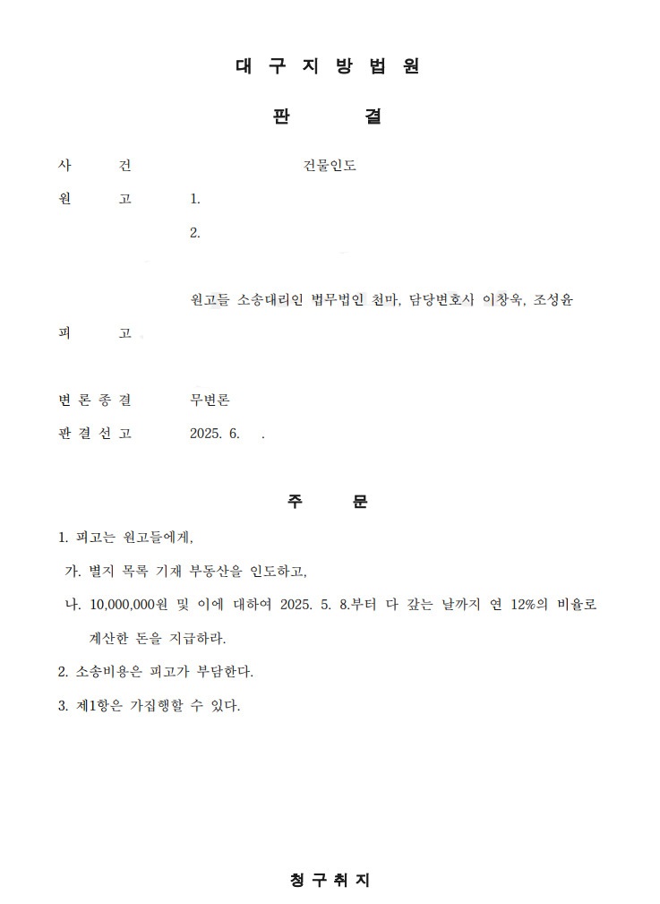 오늘은 천마법무법인에서 건물인도 사건을 어떻게 승소로 이끌었는지 알아보겠습니다.