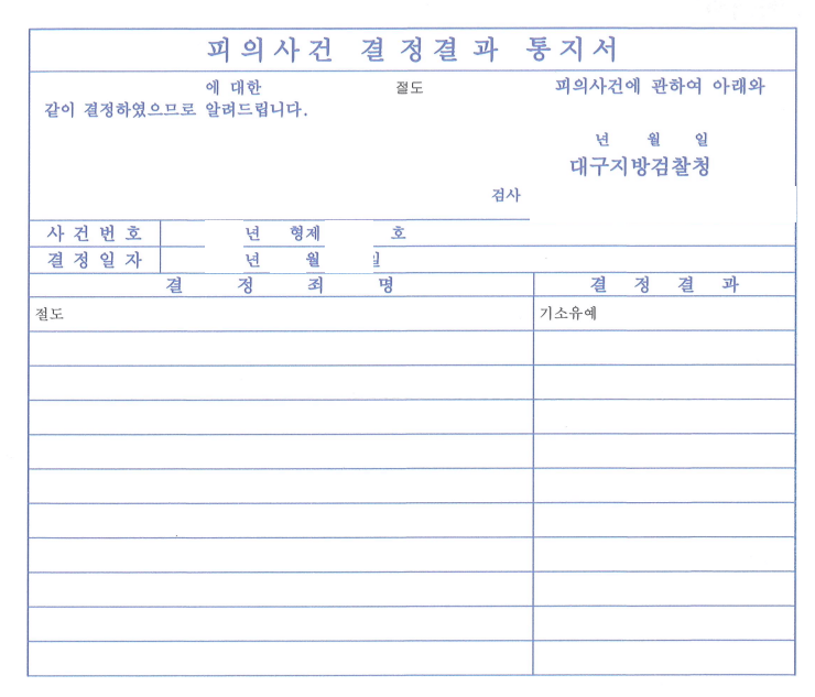 천마법무법인 조성윤 이창욱 변호사 사무실에서 변호한 결과, 다음과 같이 검찰에서 '기소유예' 결정을 하였습니다.