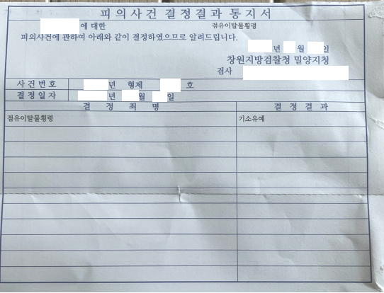 천마법무법인 조성윤 이창욱 변호사 사무실에서 변호한 결과, 다음과 같이 검찰에서 '기소유예' 결정을 하였습니다.