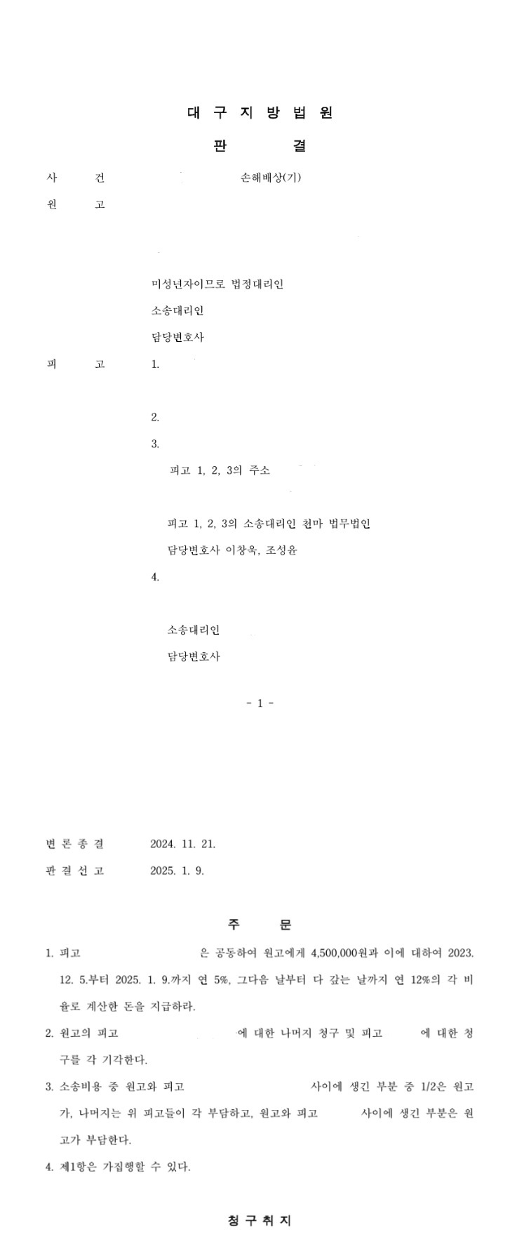 오늘은 천마법무법인에서 손해배상(기) 사건을 어떻게 승소로 이끌었는지 알아보겠습니다.