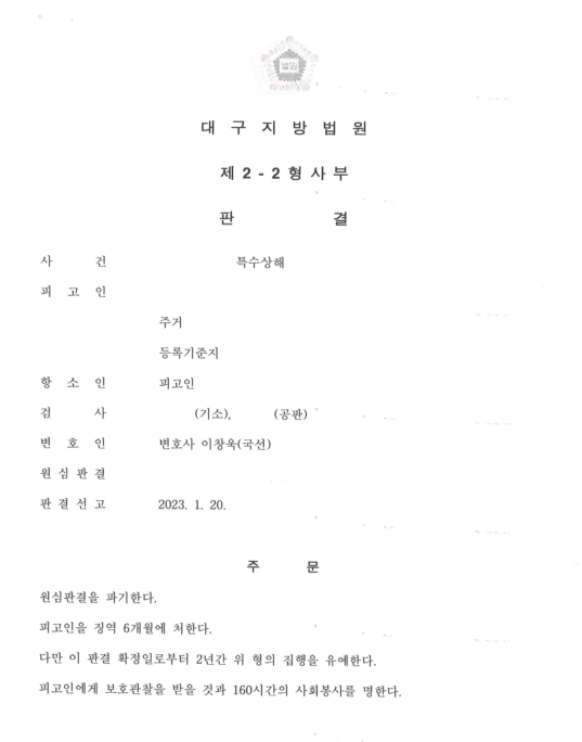 폭력범죄 형사 사건 성공사례(특수상해)(실형 → 집행유예)