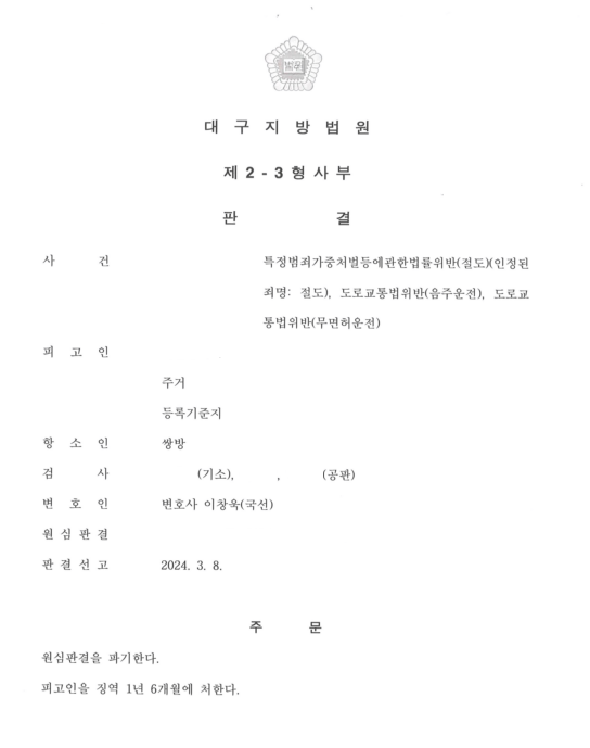 오늘은 천마법무법인에서 특정범죄가중처벌등에관한법률위반(절도), 도로교통법위반(음주운전), 도로교통법위반(무면허운전) 사건을 어떻게 승소로 이끌었는지 알아보겠습니다.
