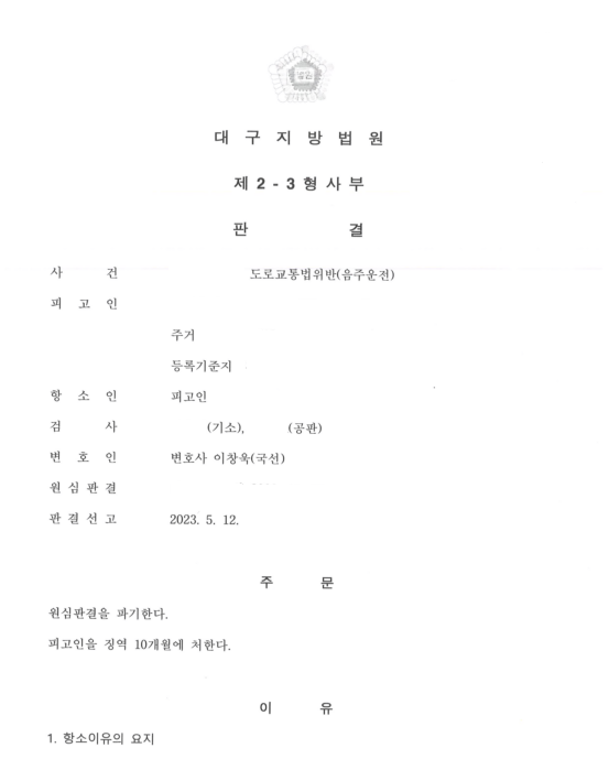 천마법무법인 조성윤 이창욱 변호사 사무실에서 변호한 결과, 2심에서는 의뢰인에 대하여 아래와 같이 감형된 판결을 선고하였습니다(징역 1년 → 징역 10월).
