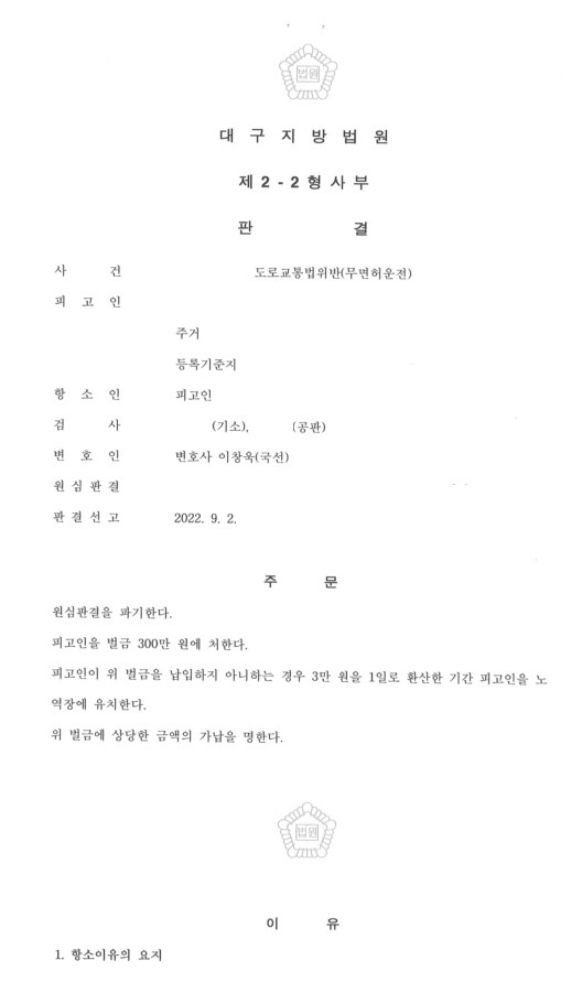 오늘은 천마법무법인에서 도로교통법위반(무면허운전) 사건을 어떻게 승소로 이끌었는지 알아보겠습니다.