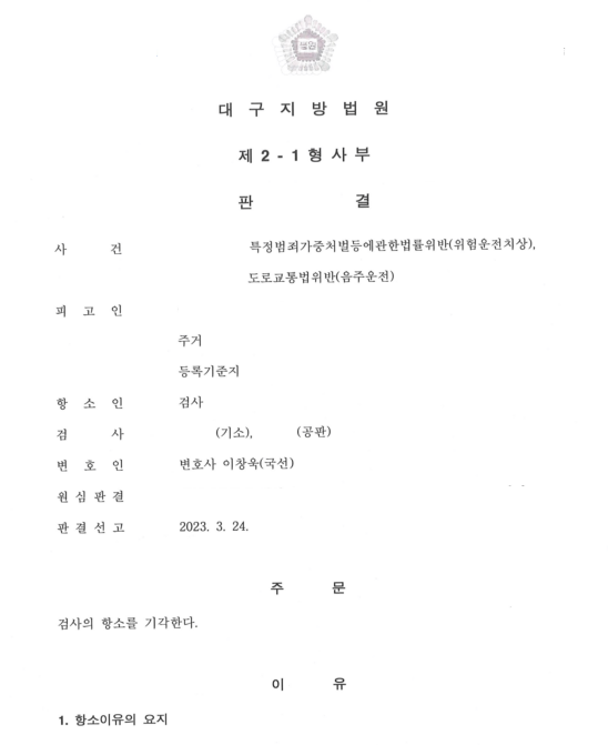 오늘은 천마법무법인에서 특정범죄가중처벌등에관한법률위반(위험운전치상), 도로교통법위반(음주운전) 사건을 어떻게 승소로 이끌었는지 알아보겠습니다.