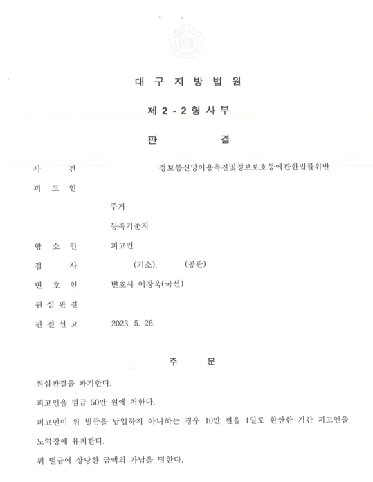 사이버범죄 형사 사건 성공사례(정보통신망이용촉친및정보보호등에관한법률위반)(벌금액 감형)