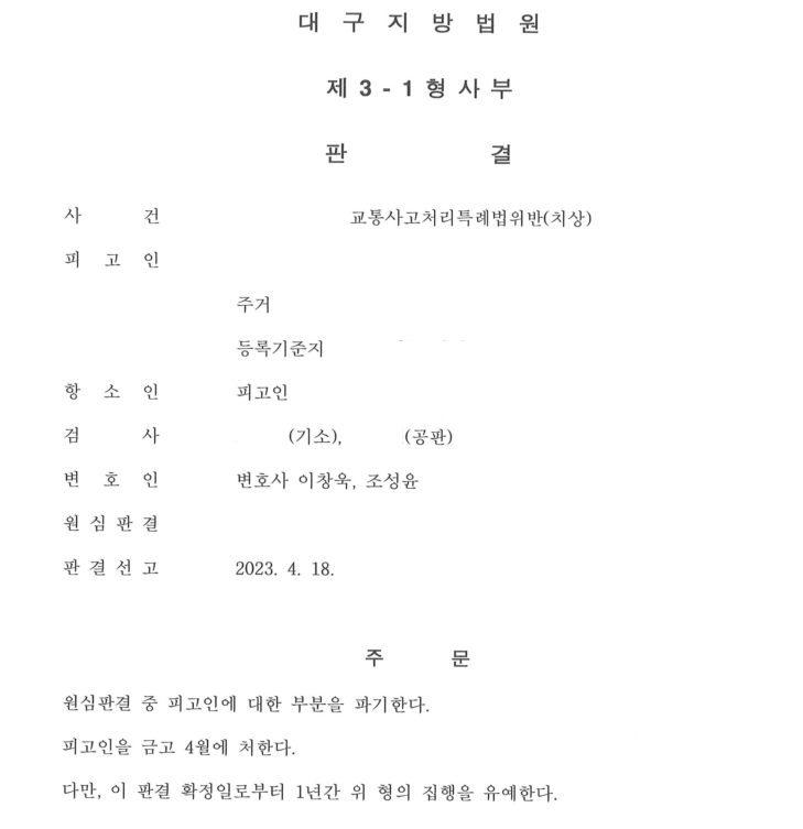 오늘은 천마법무법인에서 교통사고처리특례법위반(치상) 사건에서 어떻게 승소(사회봉사명령 파기)를 이끌어냈는지 알아보겠습니다.